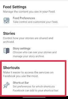প্রথমে আপনি আপনার ফেসবুক অ্যাপটি ওপেন করে সেটিংস অপশন থেকে শর্টকাট মেনুবার অপশনে চলে আসুন ।