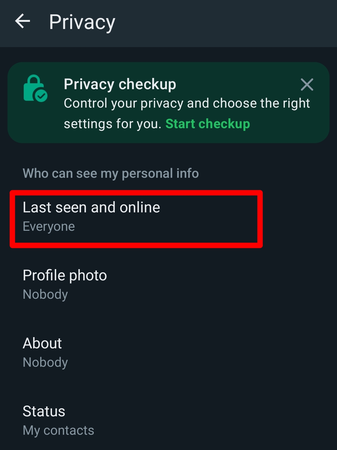 ধাপ - ০৪ : এখানে আসার পর বেশ কয়েকটি অপশন দেখতে পাবেন, এর মধ্যে Nobody ও Same as last seen সিলেক্ট করে দিন।